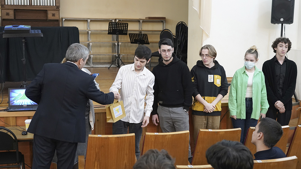 Председатель Отделения Александр Евтушенко вручил студентам, которые выступали с музыкальными номерами, небольшие подарки от Кинофестиваля и выразил надежду на дальнейшую кооперацию людей творчества на подобных мероприятиях.