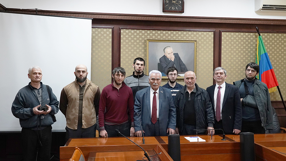 19 марта в Дагестанском государственном аграрном университете им. М.М.Джамбулатова состоялся показ и обсуждение документального фильма «Патриоты Дагестана – Герои России», созданного в прошлом году Дагестанским отделением Союза кинематографистов России при поддержке Министерства культуры РД. Гостями творческой встречи, прошедшей в рамках киноклуба «КИНОГОР», стали представители съемочной группы фильма: Магомед Сулейманов, Ариф Гамидов, Александр Евтушенко.