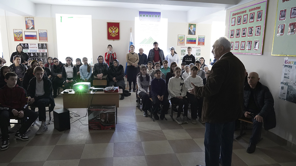 Просмотр фильма состоялся в Урахинской средней образовательной школе имени Тахо-Годи, где, помимо родителей участников СВО, иных жителей села, присутствовали школьники и весь педагогический коллектив учреждения.
