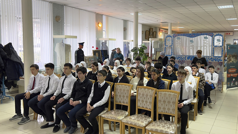 Особенностью этой встречи, как и в филиале ДГУ, стало то, что зрители сидели рядом с героями. В зале, кроме школьников и педагогов, были и сотрудники музея — те самые активистки волонтёрского движения «Шьём для наших. Кизляр», чья ежедневная работа и показана в фильме.