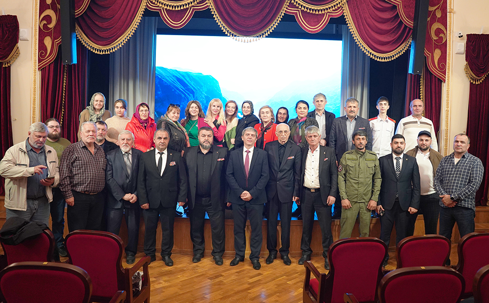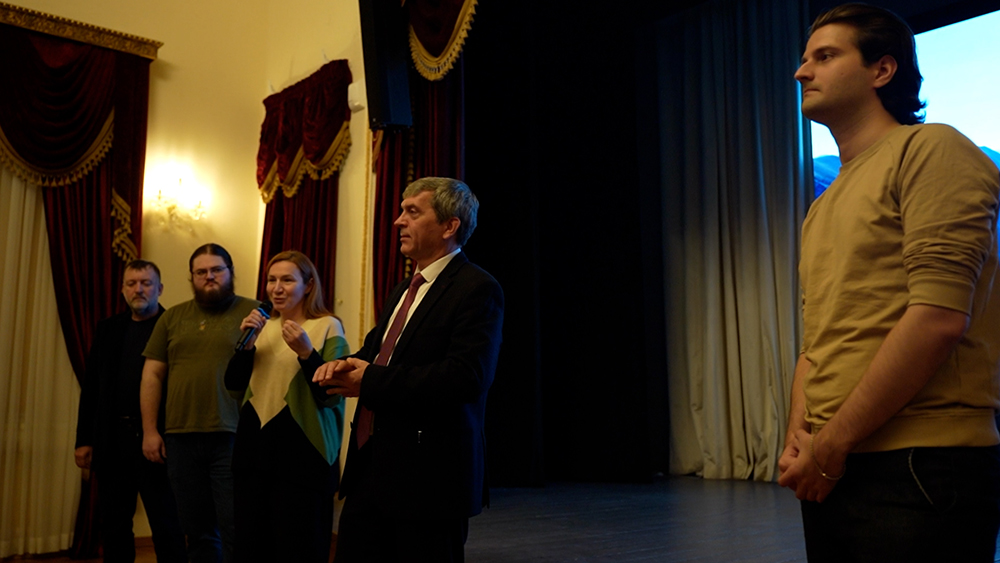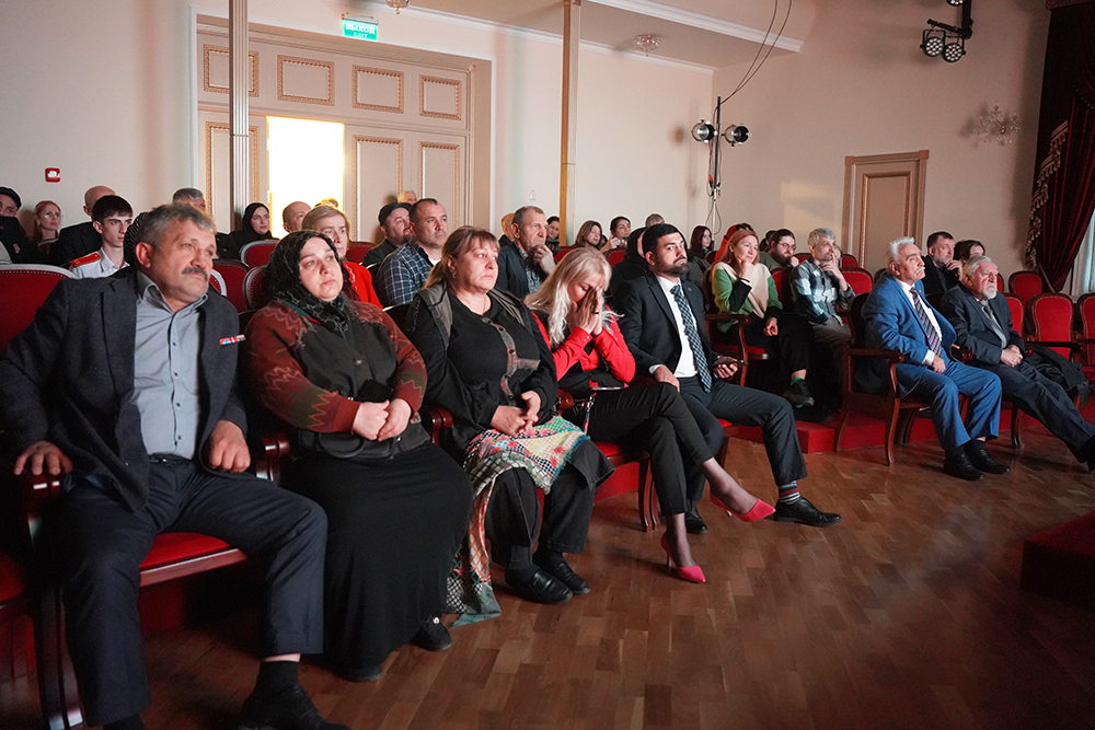 В зале присутствовали приглашенные  участники СВО, герои фильма, творческие деятели нашей республики, студенты и, конечно, члены творческой бригады под руководством председателя Отделения Александра Евтушенко.