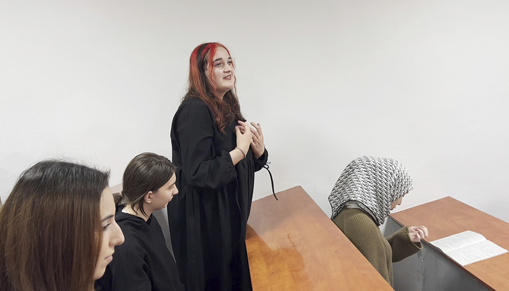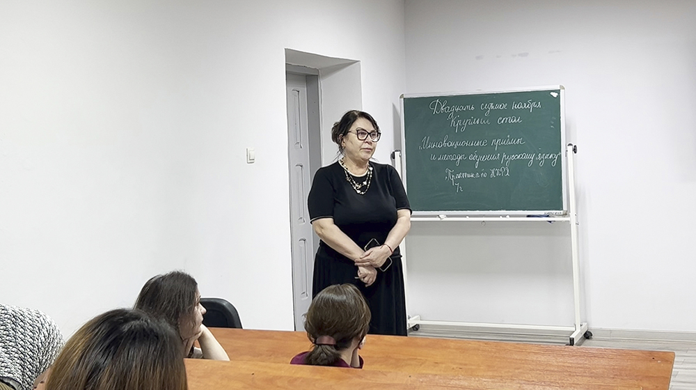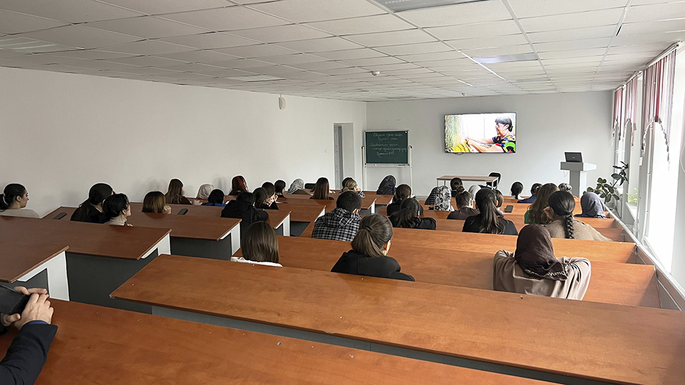 Перед показом декан факультета Рамазанова Эльмира Алиевна представила руководителя проекта — председателя Дагестанского отделения Союза кинематографистов России Александра Евтушенко. Он, в свою очередь, рассказал о теме визита и цели проекта, подчеркнув, как важно будущим учителям в первую очередь самим научиться понимать и оценивать происходящее.