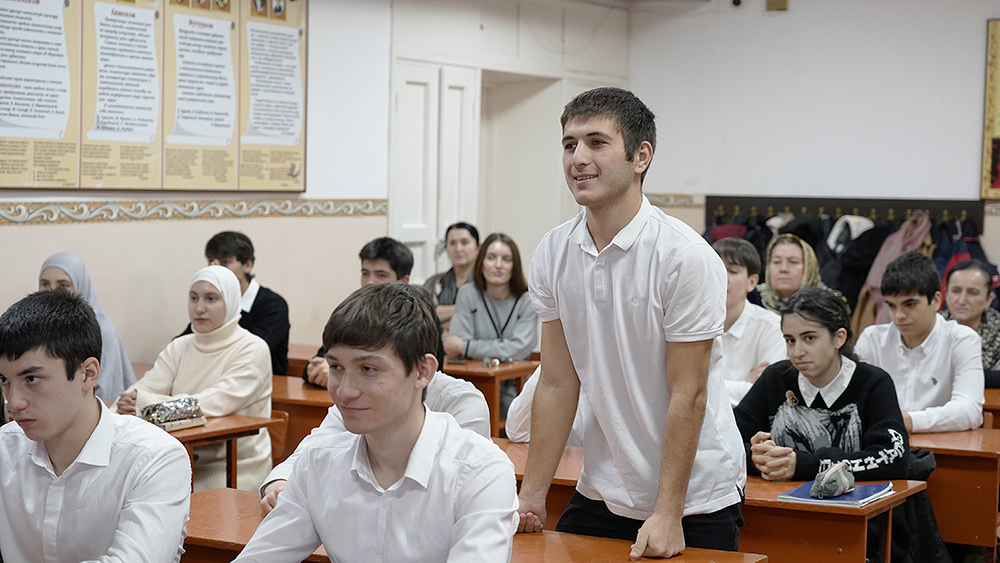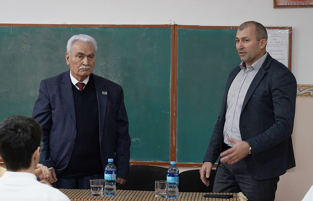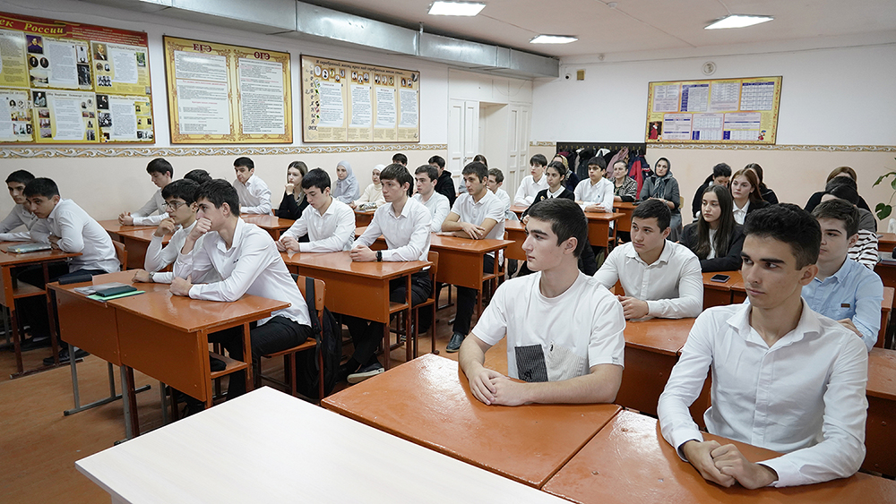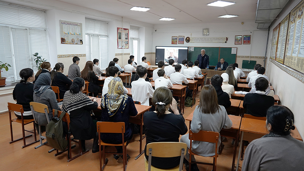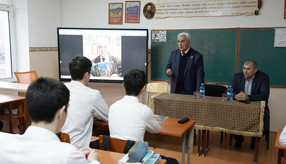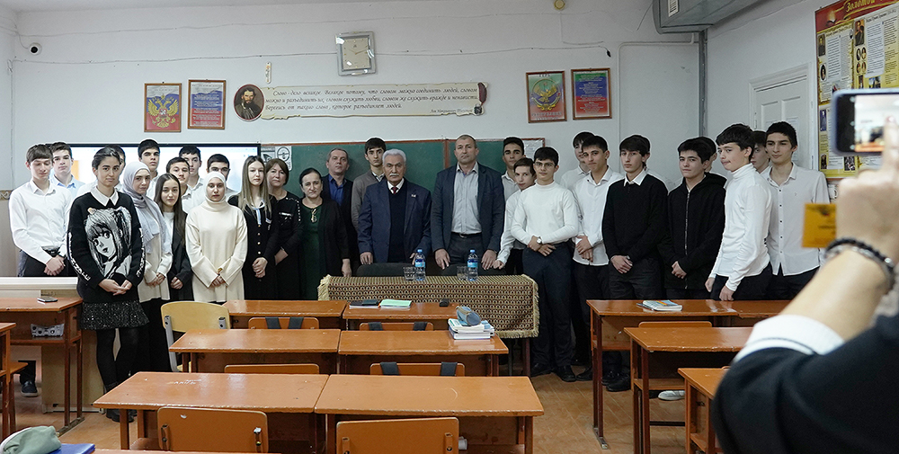 В дружественной, неспешной обстановке гости рассказали о цели визита, а именно: ознакомление учеников с деятельностью республиканского отделения Союза кинематографистов России, развитии кинематографа и его перспективах в Дагестане и на Северном Кавказе, о роли кино в воспитании молодежи и во взаимоотношениях в быту.
