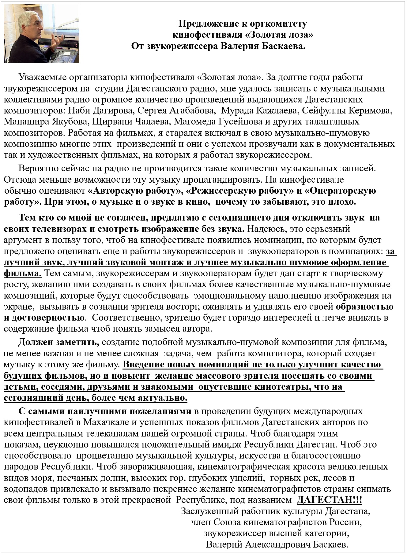 Звукорежиссер Валерий Александрович Баскаев прислал дополнительное письмо, которое мы публикуем здесь полностью.