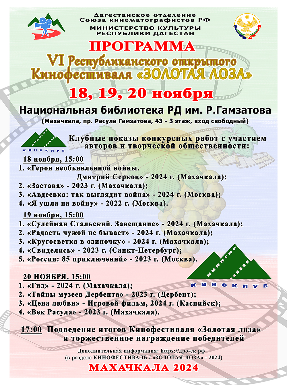Программа кинофестиваля "Золотая лоза" - 2024г.